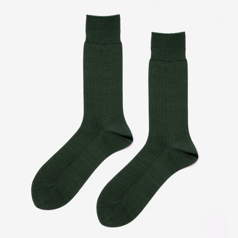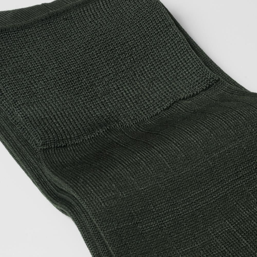 落ち着いた色調にひそむ個性。大人の品格が香るアクセントカラー。ネイビーやグレーの装いに、控えめに個性をを添え、革靴の色味とも美しく調和します。装いを柔らかく見せたいとき、ほんの少しの変化で品のある洒落感を演出できるのがオリーブの魅力。ドレスソックスに“らしさ”を添えたい方へおすすめです。