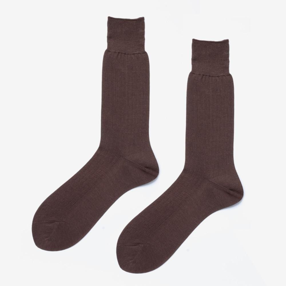 落ち着いた色調にひそむ個性。大人の品格が香るアクセントカラー。ネイビーやグレーの装いに、控えめに個性をを添え、革靴の色味とも美しく調和します。装いを柔らかく見せたいとき、ほんの少しの変化で品のある洒落感を演出できるのがブラウンの魅力。ドレスソックスに“らしさ”を添えたい方へおすすめです。